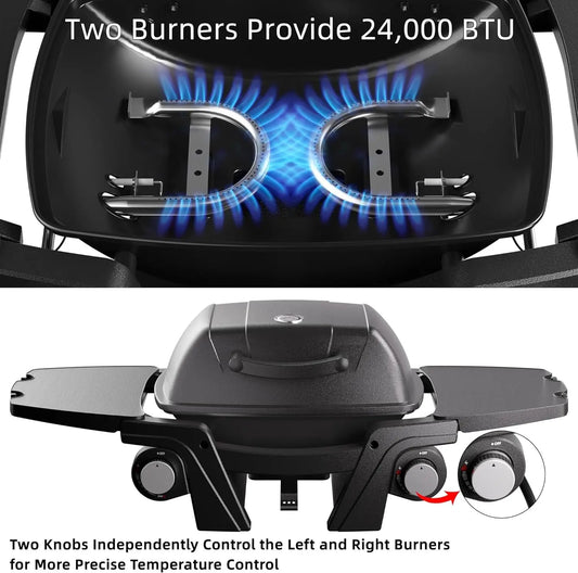 GeniusGrill Portable Propane Grill: 24,000 BTU Outdoor Tabletop BBQ with Dual Burners